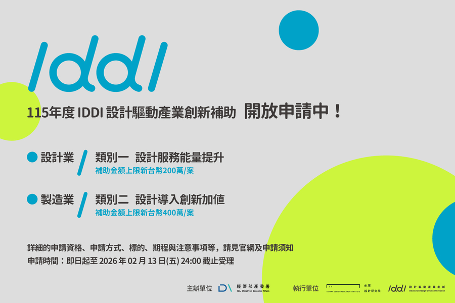 【代發】115年度 IDDI 設計驅動產業創新補助-開放申請中!