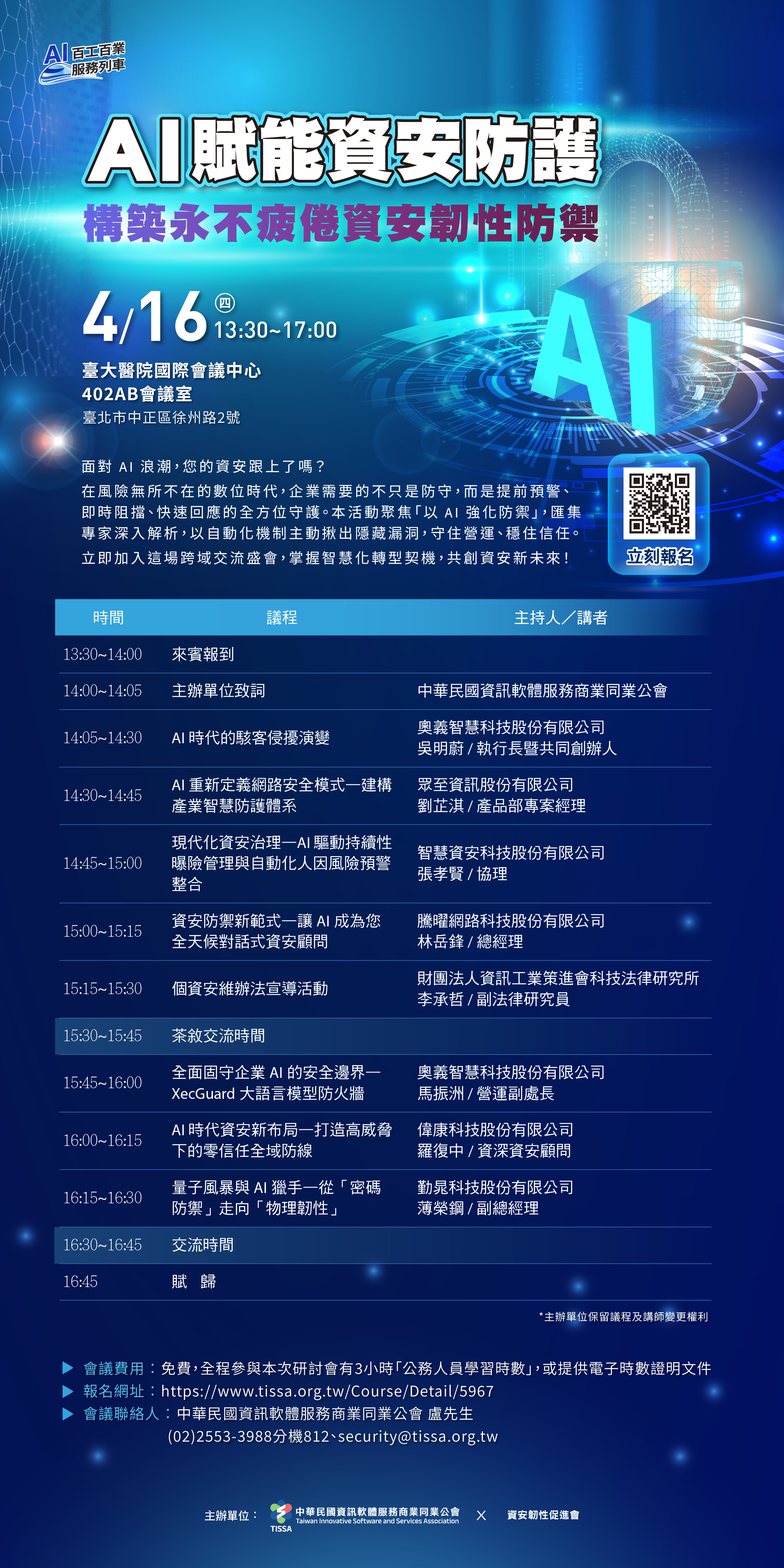 「4/8 情資驅動資安治理:政府數位韌性的關鍵拼圖」研討會及「4/16 AI 賦能資安防護」研討會