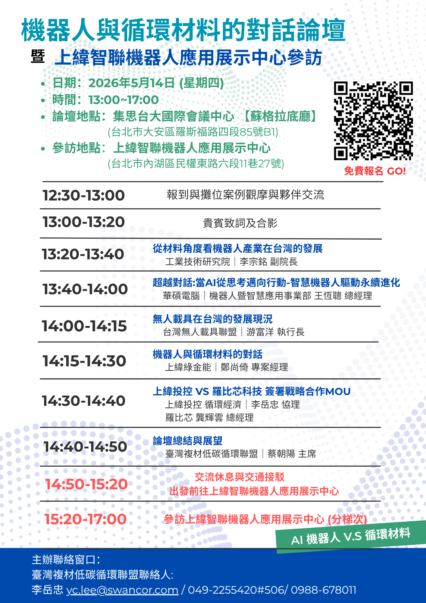 【代發】5/14 機器人與循環材料的對話暨上緯智聯機器人應用展示中心參訪-歡迎參加