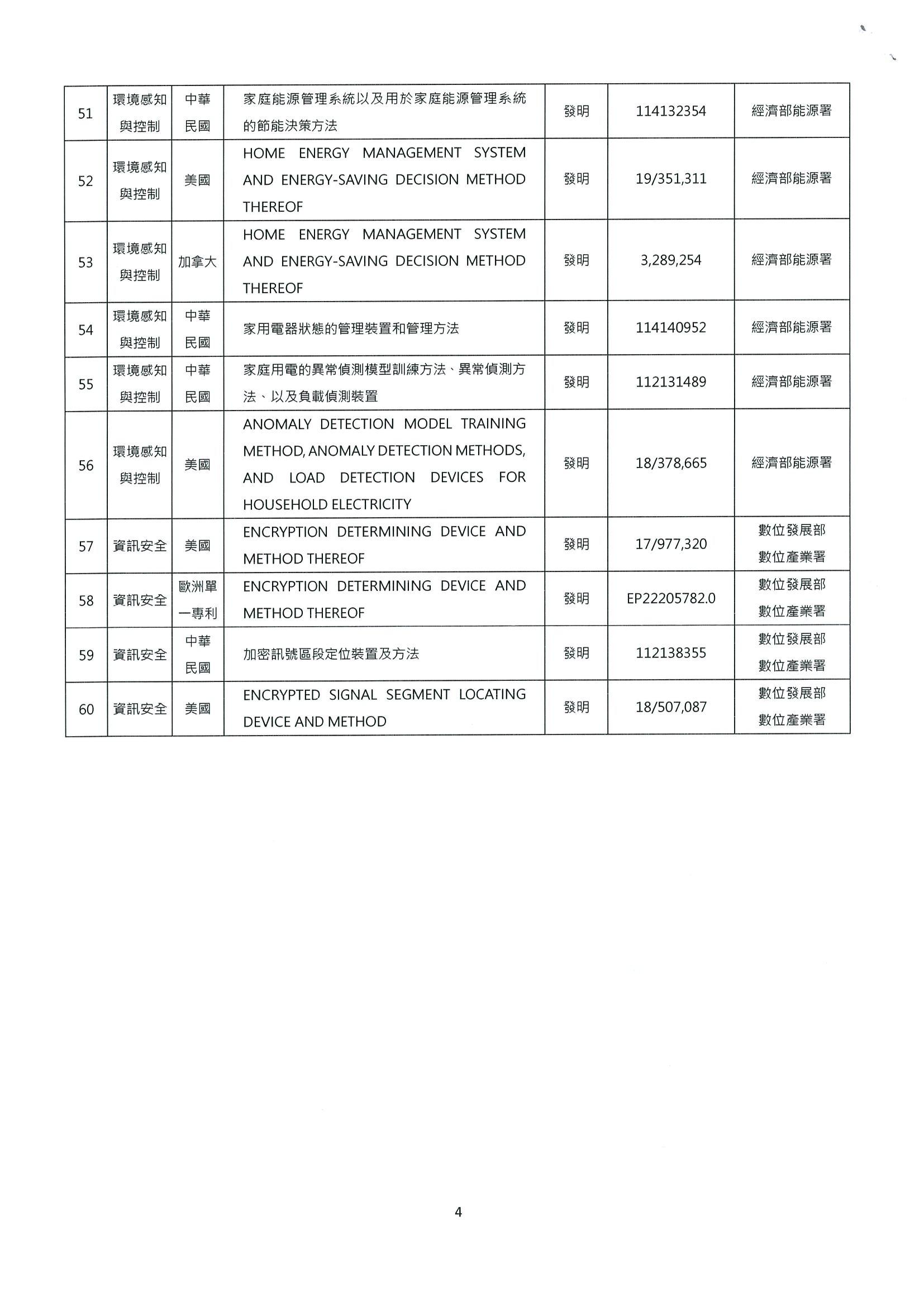 可運用專利成果:本公告非專屬、專屬授權標的共60件,包含經濟部產業技術司30件、經濟部能源署14件、數位發展部數位產業署16件,詳如下表。