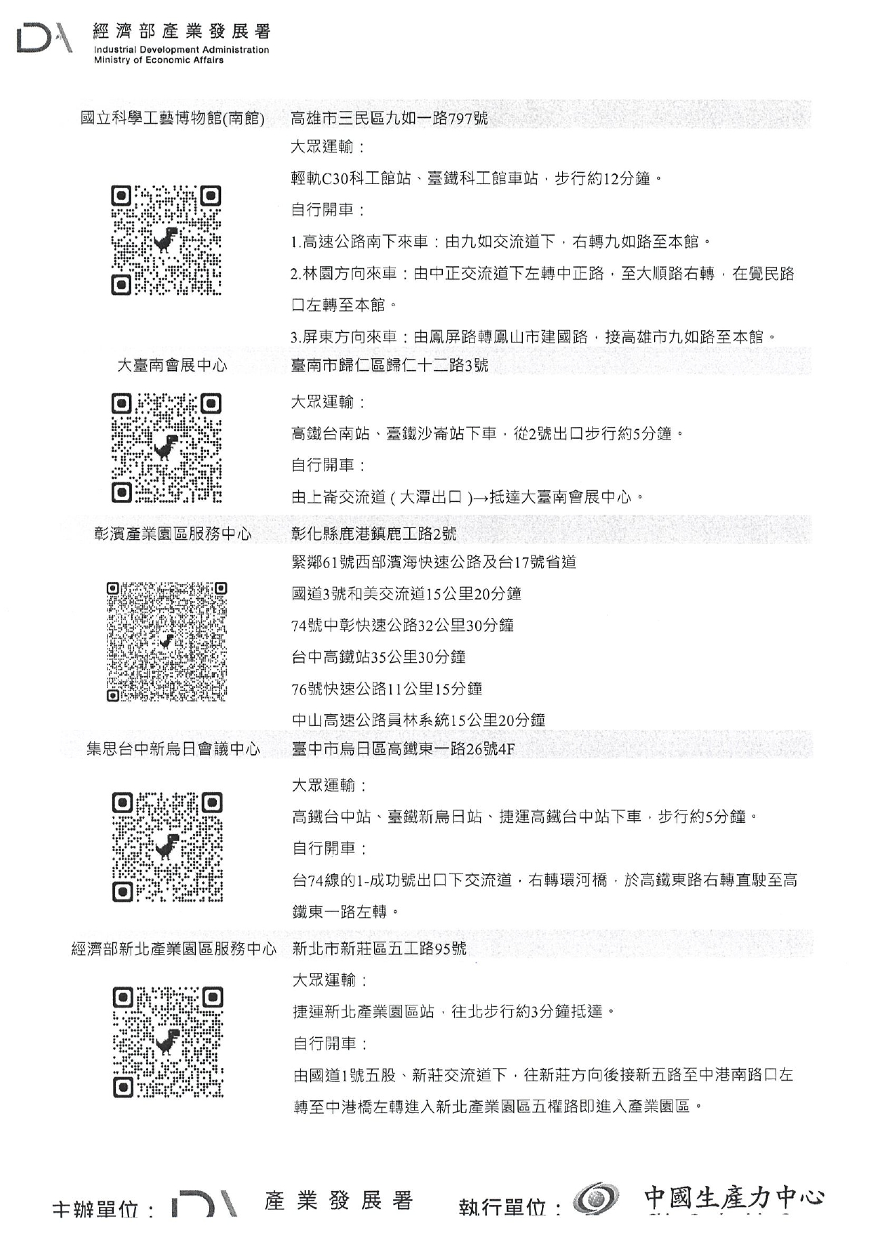 (五) 115年1月16日(星期五)上午9時30分至下午4時,假經濟部新北產業園區服務中心1樓禮堂(新北市新莊區五工路95號)。