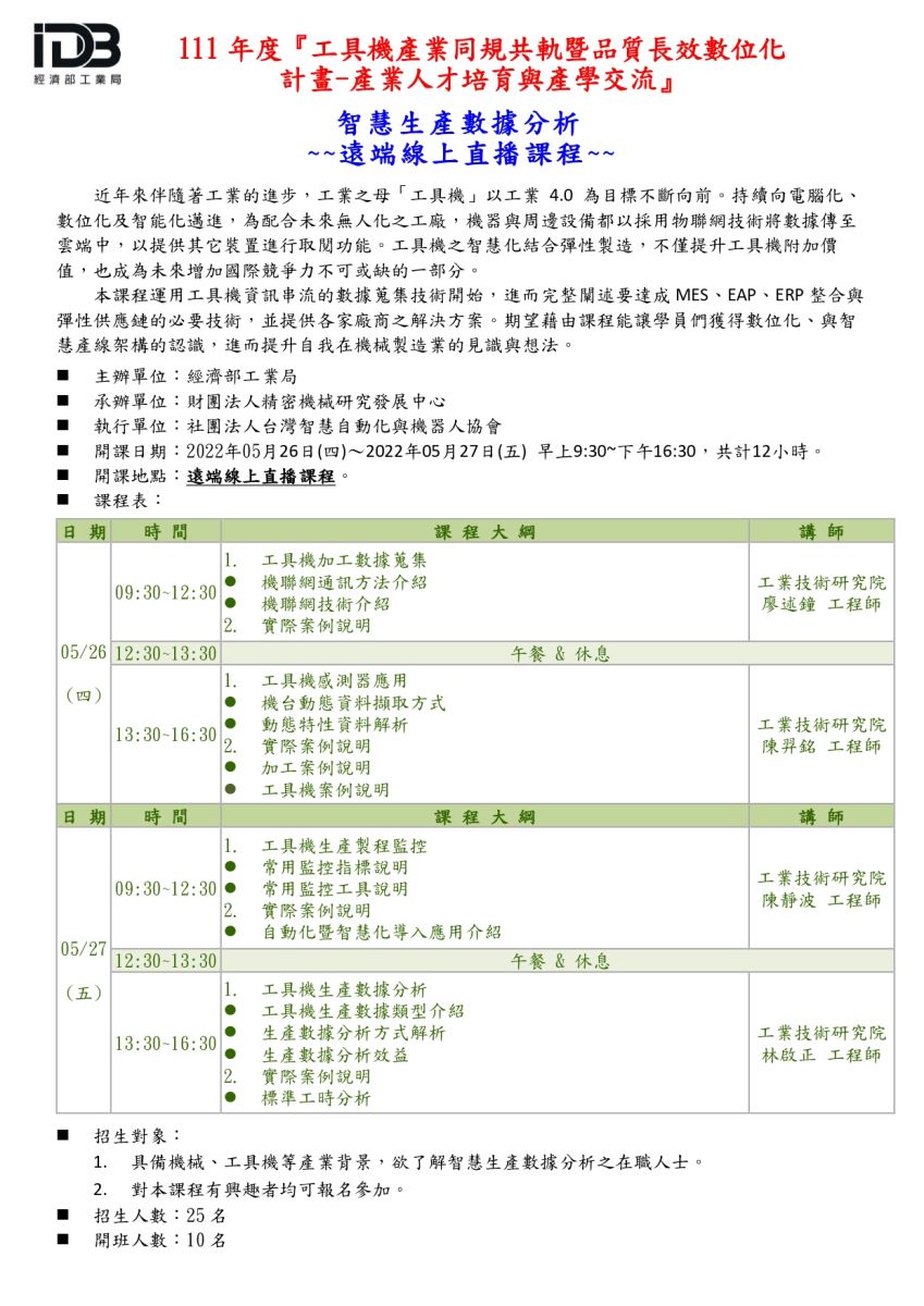 本課程由經濟部工業局主辦,財團法人精密機械研究發展中心承辦,社團法人台灣智慧自動化與機器人協會執行。